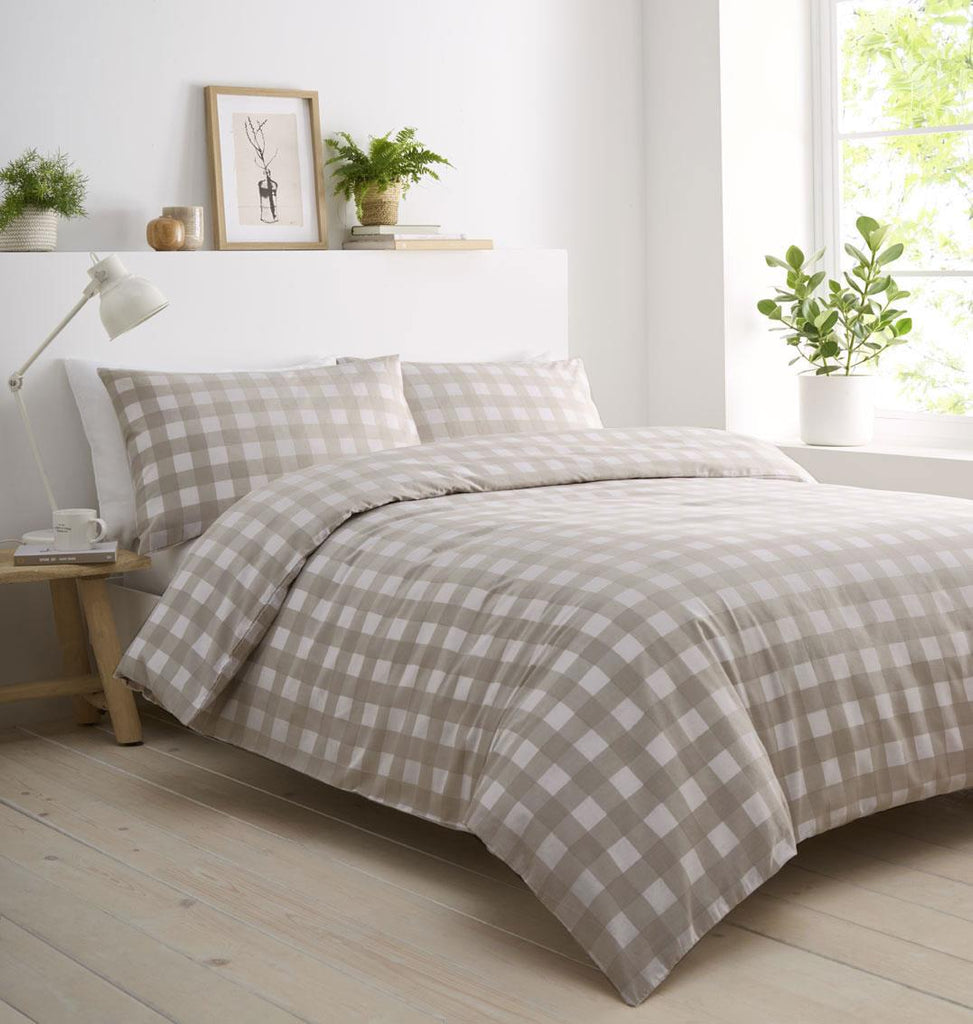 Gingham Check Duvet Set – Natural Brown or Sage Green